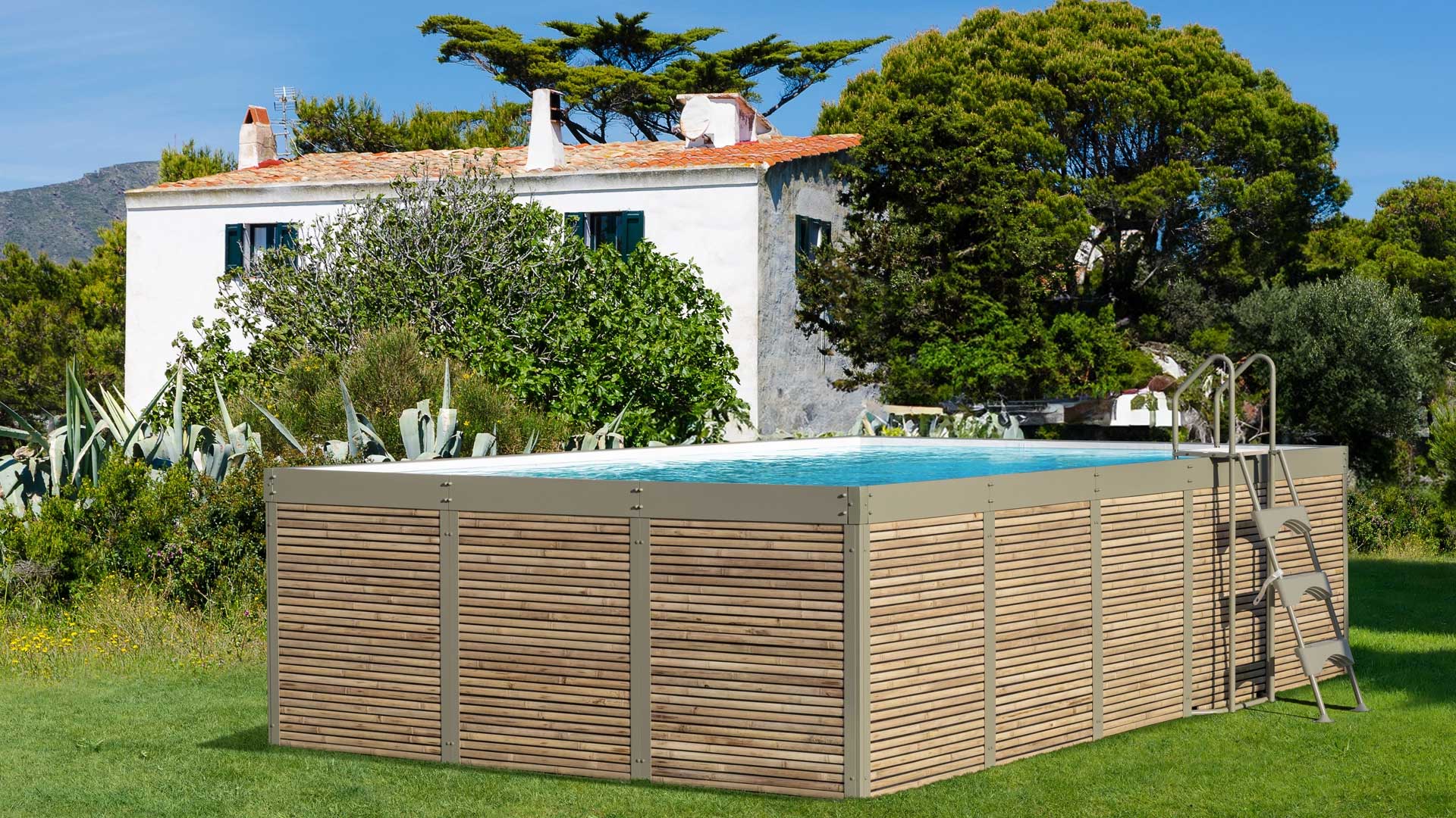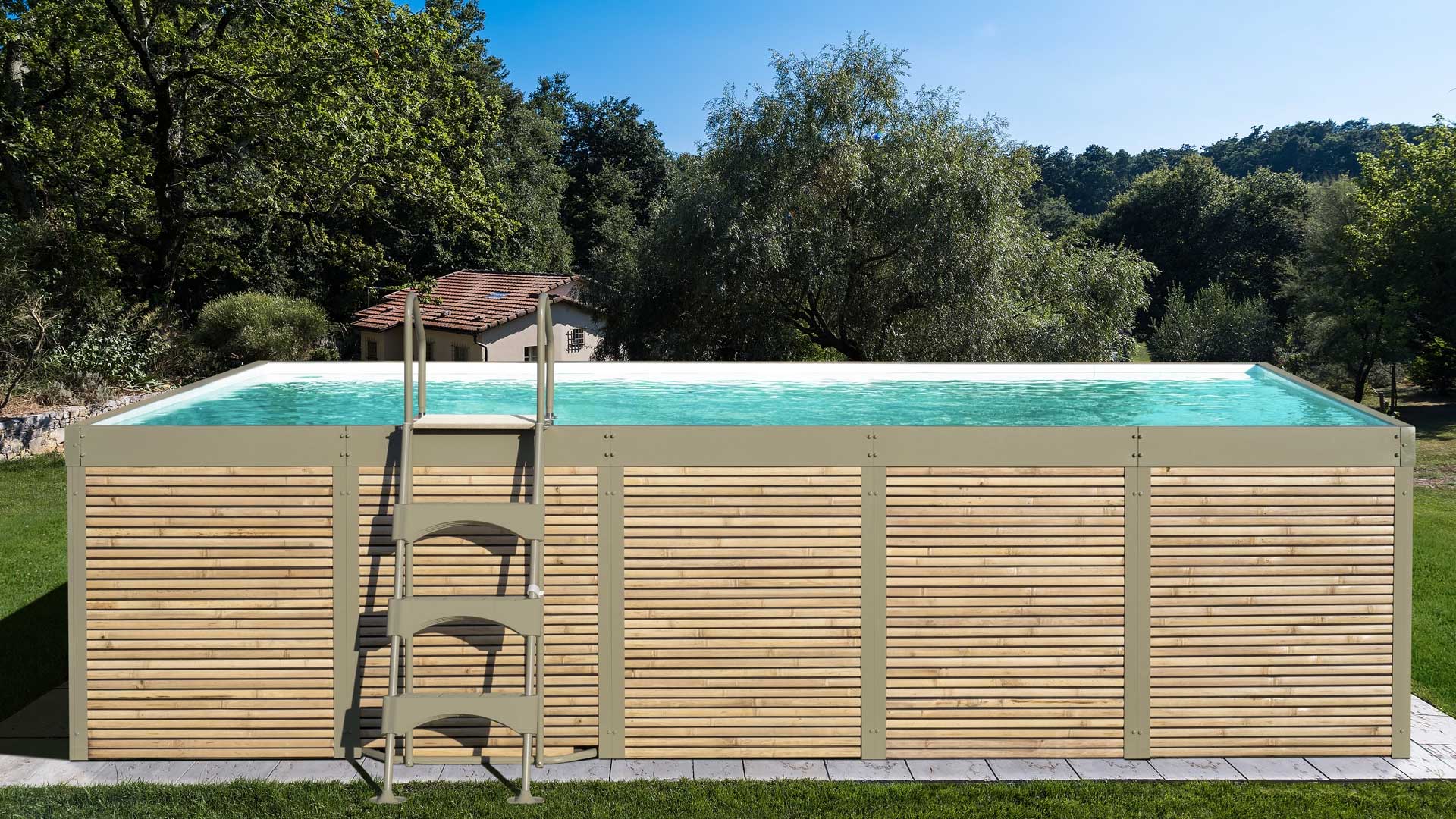 La piscina fuori terra ANTEA è rivestita con pannelli in listelli di bambù, un materiale ecologico, dal carattere elegante e naturale, in completa armonia con l’ambiente circostante e dalla crescita estremamente rapida.