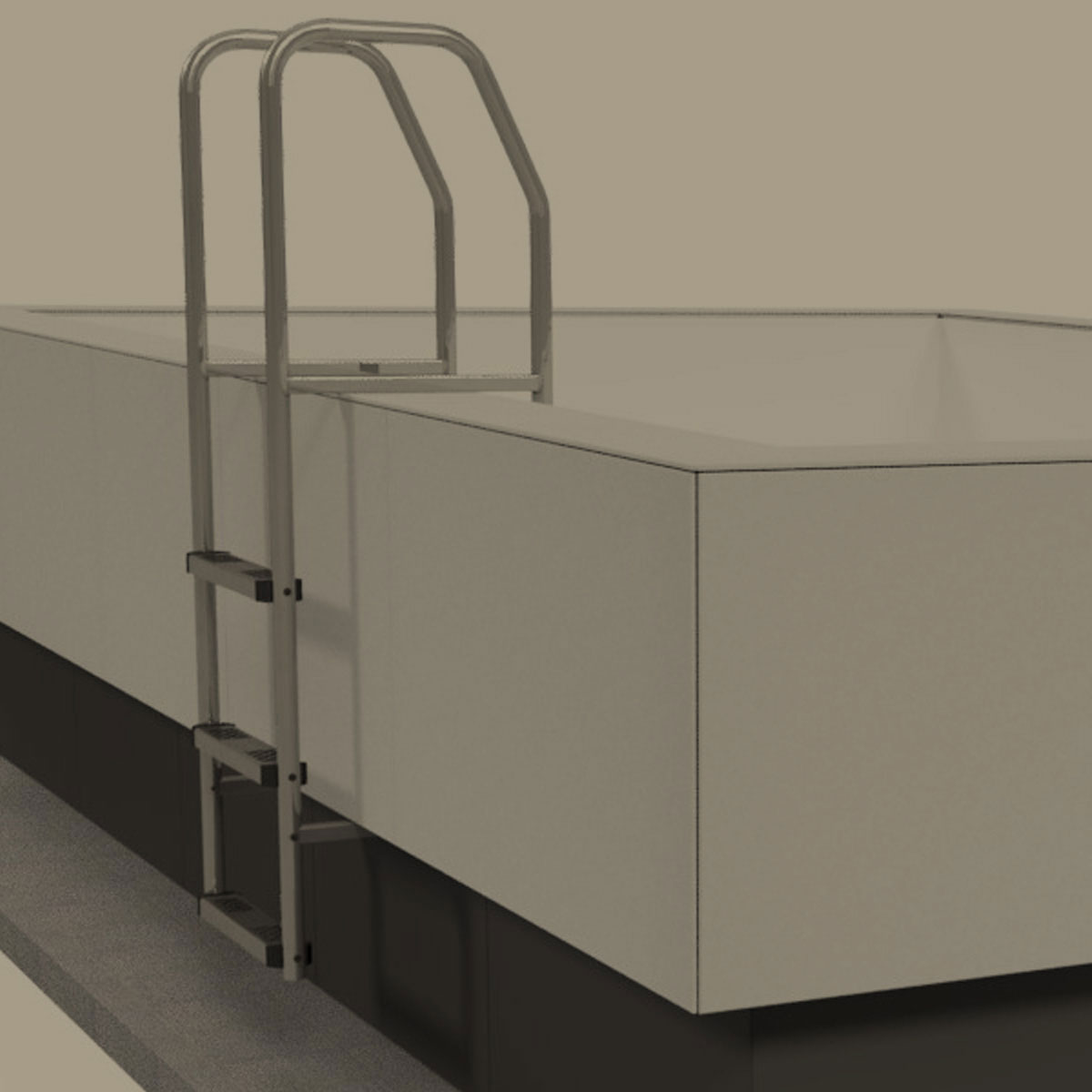 - EQUIPMENT Pool, reinforced stoneware cladding, paneling with integrated edge, filtration, LED light, vacuum cleaner, overflow system, stainless steel ladder