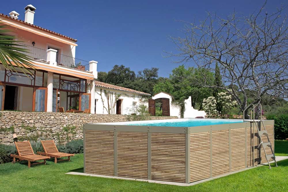 Piscina fuori terra rigida - design - rivestimento in rattan